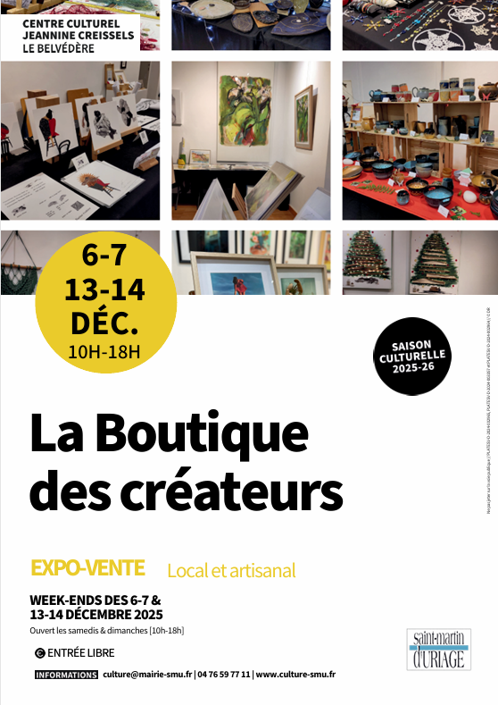 Boutique éphémere art local le 9, 10, 16, 17 décembre 2023 au belvedère St Martin d’Uriage