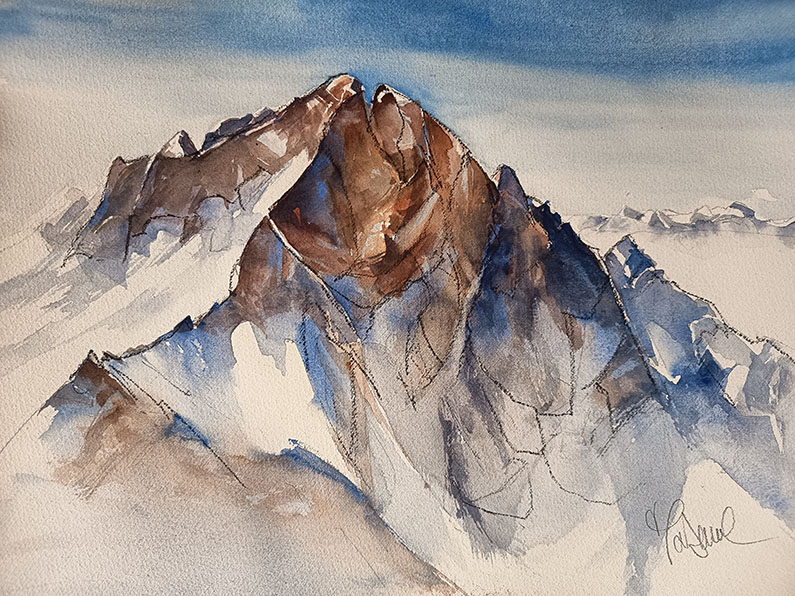 Mont aiguille Aquarelle 2022 25×30